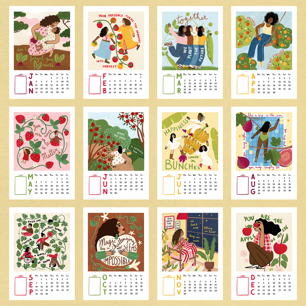 From the first seed to the final harvest, the calendar 2026 is a journey through growth, connection, and quiet moments of joy. Each month pairs a vibrant illustration of fruit or vegetables with a handpicked quote; some playful, some poetic, all chosen to celebrate the cycles of nature and the stories we live alongside them.